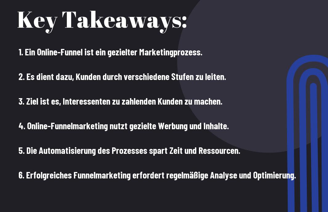 Zusammenfassend kann gesagt werden, dass Online-Funnelmarketing eine effektive Strategie ist, um potenzielle Kunden auf digitalen Plattformen anzusprechen, sie zu überzeugen und schließlich zu Kunden zu konvertieren. Der Prozess umfasst verschiedene Schritte, darunter das Erzeugen von Awareness, das Schaffen von Interesse, das Erzeugen von Verlangen und schließlich die Aktion des Kaufs oder der Conversion. Durch die Nutzung von gezielten Marketingbotschaften, automatisierten Systemen und effizienten Landingpages kann Online-Funnelmarketing dazu beitragen, den Verkaufsprozess zu optimieren und die Umsätze zu steigern.